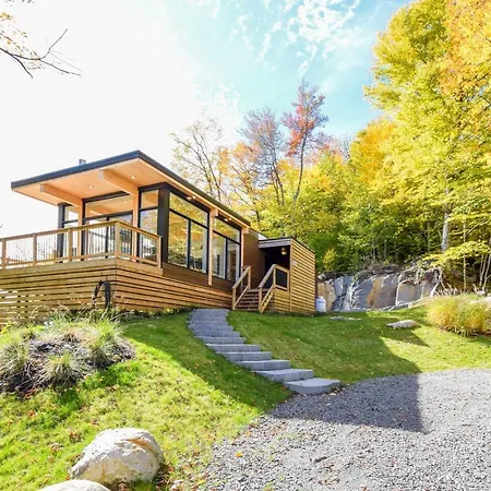The 1-bedroom Modern Chalet With Mountain And Lake View By Reserver.Ca is located 3.3 km from Au Pays Des Merveilles and welcomes its guests to enjoy canoeing, snow skiing, and hiking.